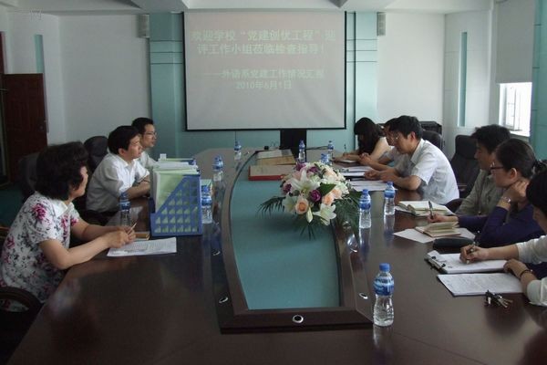 高晚欣副书记一行认真听取了汇报,并查阅了相关支撑材料。高晚欣表示,外语系党建工作汇报内容全面,所提供的支撑材料详实细致,较为充分地反映出外语系近年来在党建工作中取得的成绩。同时,希望外语系进一步凝炼特色、突出亮点,集中力量展示党建工作所取得的标志性成果。