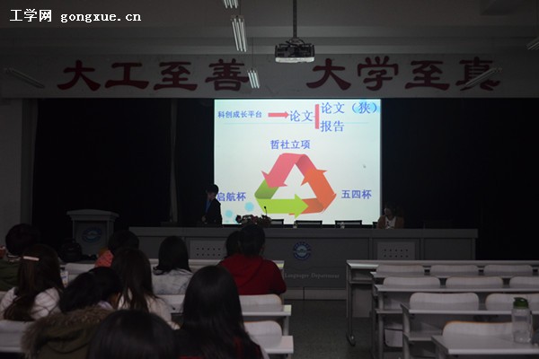 首先,外语系辅导员由春桥为马逢艺颁发了科创导航员证书,并阐述了科创活动对大学生的重要意义。接下来,马逢艺为外语系的同学们详细介绍了科技创新的过程及需要注意的问题,同时与大家分享了自己的科创经验。在现场提问环节,同学们都针对自己的问题请教了马逢艺学姐,她也耐心细致地一一做了解答。