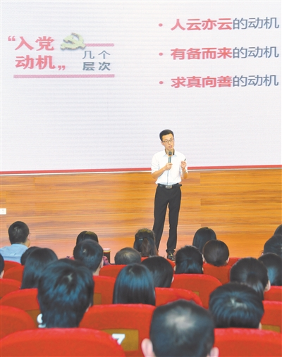 台上故事段子不断,台下掌声阵阵、走道挤满学生……这不是哪个学者名人的讲座,而是一个“80后”高校思政老师讲授《端正入党动机争做合格党员》党课的情形。