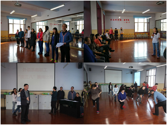 在这个春天即将来临的美好时节,我们迎来了第108个“三八”国际劳动妇女节。为向广大女同胞表达由衷的祝福和敬意,外语系工会举办了““庆三八”跳绳比赛”和外语系天籁之音合唱团汇报演出活动。外语系女教工充分发挥了“大半边天”的作用,在活动中展示了她们良好的风采与情怀!(审核:夏宝慧)