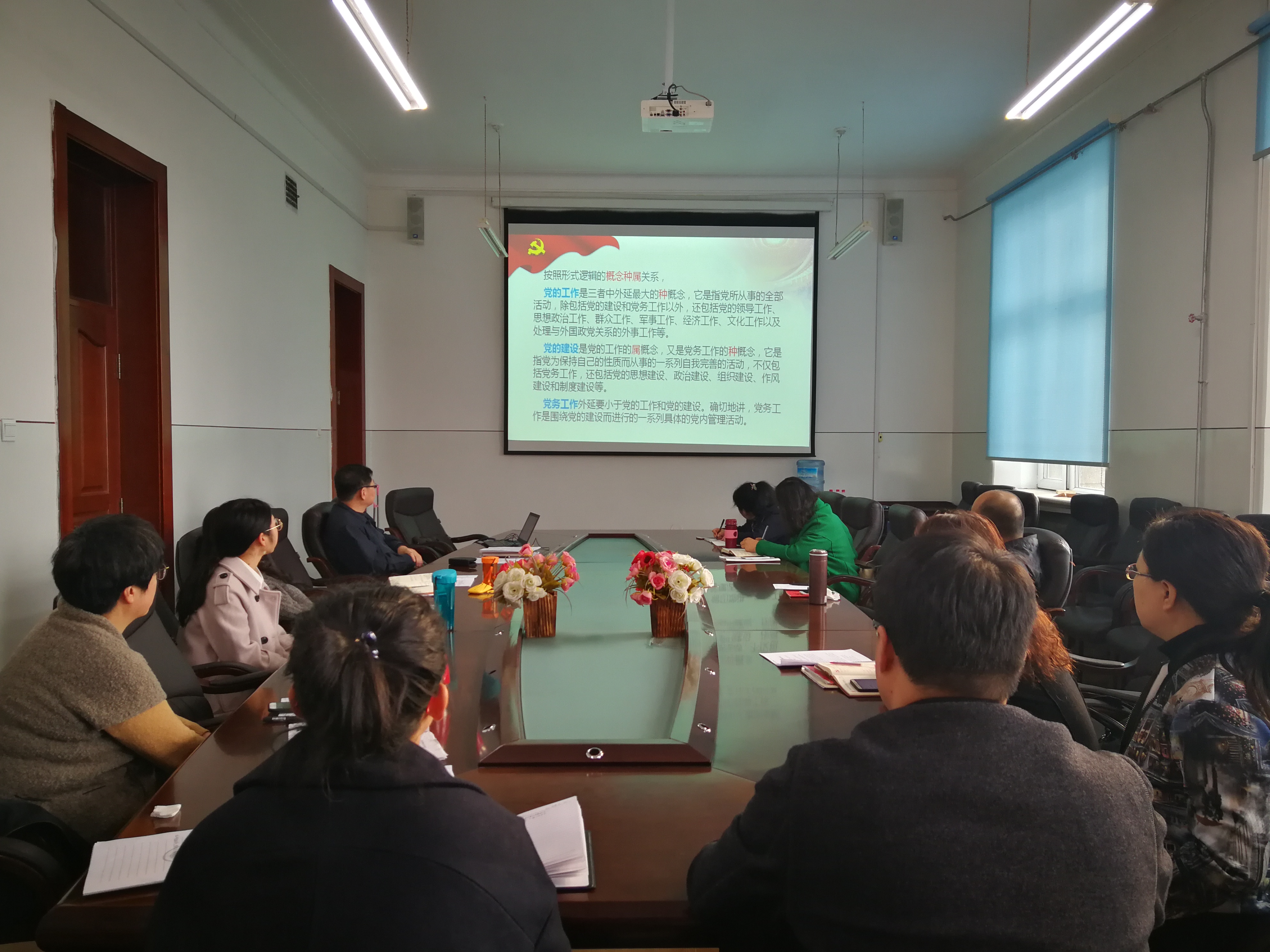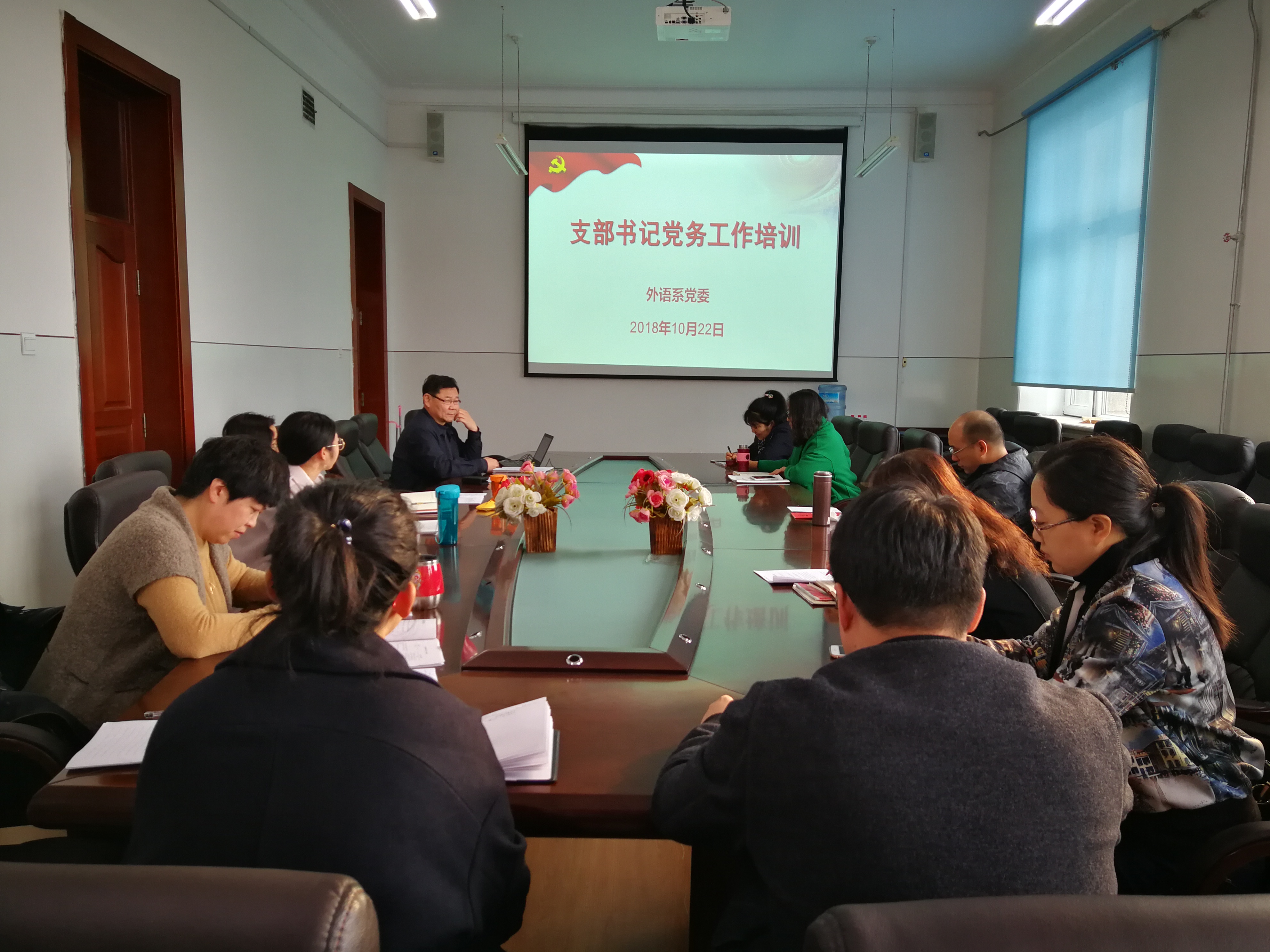 10月22日,外语系分党委在41号楼417组织开展党支部书记党务工作基础知识集中培训。培训由分党委书记赵欣主讲,全体教工及学生党支部书记均到会参加了培训学习。